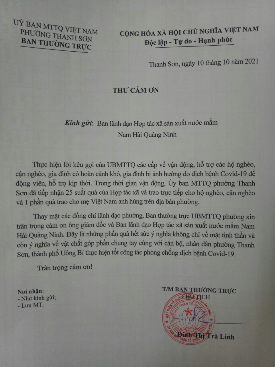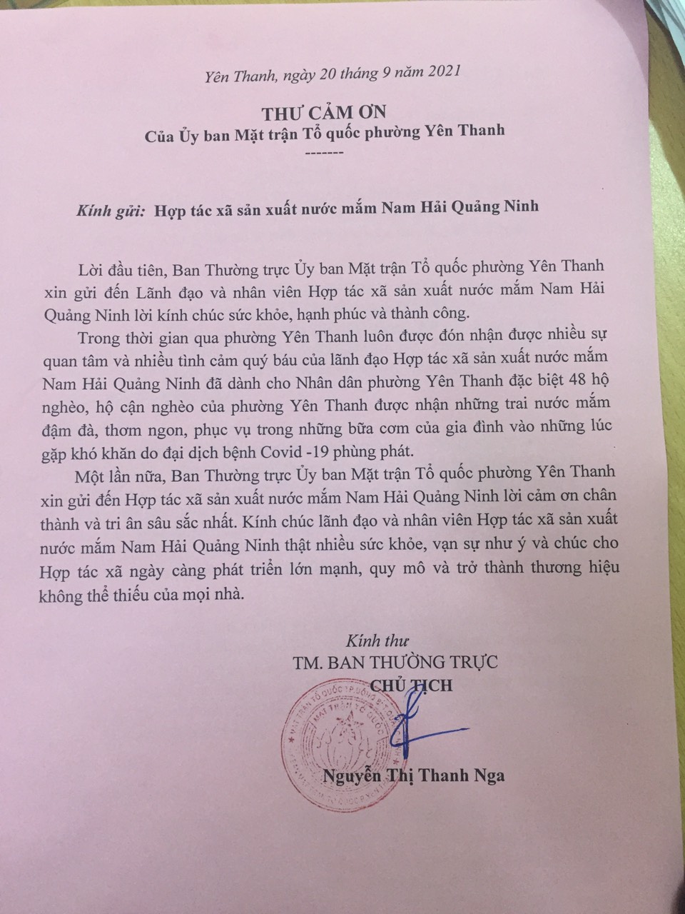 Bằng những hoạt động góp phần nâng cao tinh thần và vật chất cho những hộ gia đình có hoàn cảnh khó khăn,Hợp tác xã sản xuất nước mắm NamHải Quảng Ninh luôn nhận được những lời cảm ơn,sự tri ân của người dân cũng như các cấp lãnh đạo địa phương và thành phố.